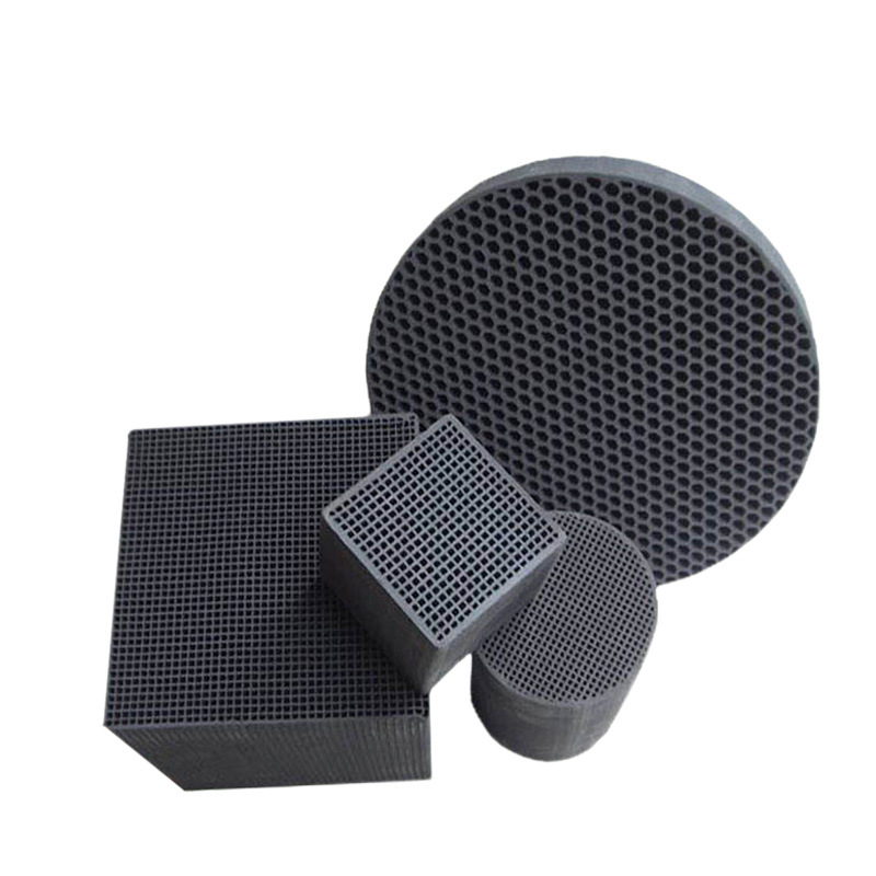 蜂窝活性炭主要成份是活性炭,正常抗压强度大于0.8MPa 常用规格 50*50*100mm、100*100*100mm 使用温度 小于400摄氏度孔密度 100孔/平方英寸、150孔/平方英寸 空塔风速 0.8米/秒比表面积 大于700平方/克 外观 产品表面平整,没有裂纹注:其它规格可按用户要求生产.